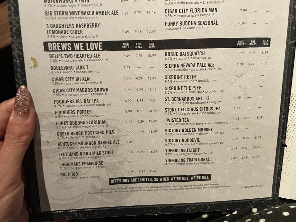 Welcome to Yard House Sarasota, a vibrant dining destination nestled in the heart of Sarasota, Florida. This New American bar offers an eclectic menu that beautifully combines classic dishes with innovative flavors, catering to the eclectic tastes of its guests.